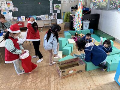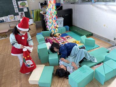 好きな遊びの時間では、サンタさんごっこや製作遊びを楽しんでいます