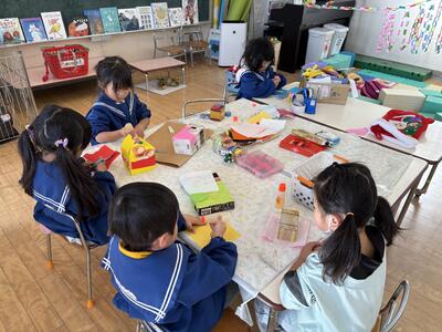 26日(火)は、江名小学校の1年生と秋のおもちゃ作り交流がありました