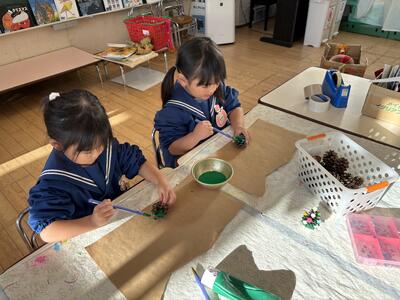 松ぼっくりのツリー作り