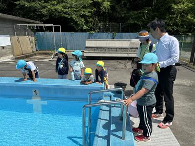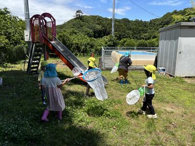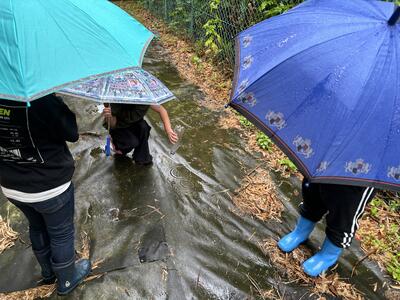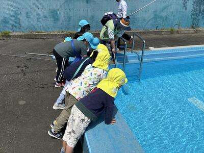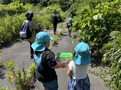 22日(水)は、ひまわり・そら組さんで江名小学校へおたまじゃくしをとりに出かけました