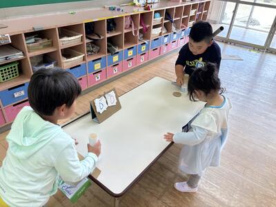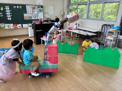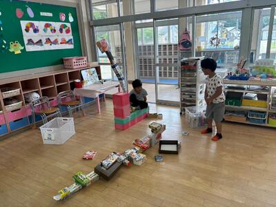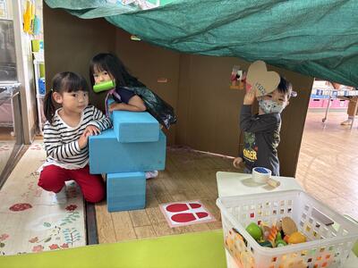自由な遊びの時間では、おうち作りやゲームセンターを楽しんでます