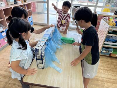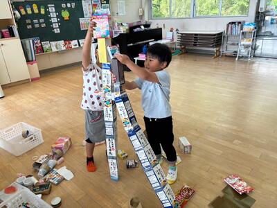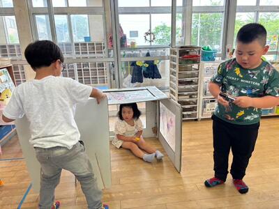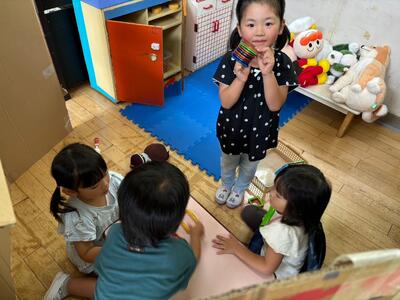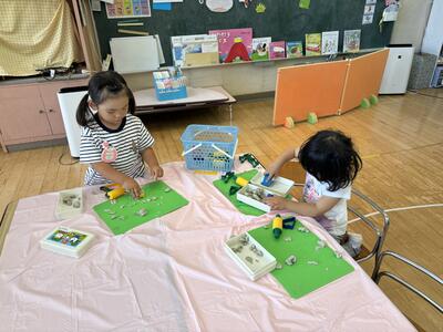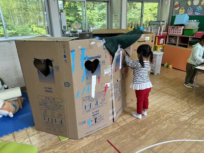 6月のお製作が完成して、お家を作って楽しんでいますね(*´˘`*)♡