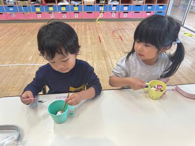 年長組さんは、何やら保育参観に向けて準備しているようです★楽しみにしていてくださいね