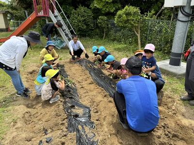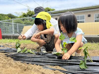 6日(木)は、みんなでさつまいもの苗植えをしました