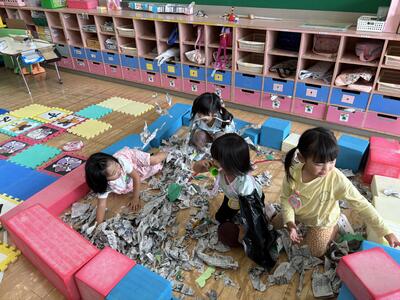 新聞紙のお家や射的、粘土など好きな遊びを楽しんでいます