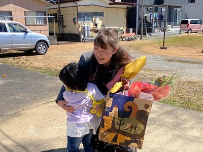 卒園したお友達が、ピカピカのランドセル姿を見せにきてくれました
