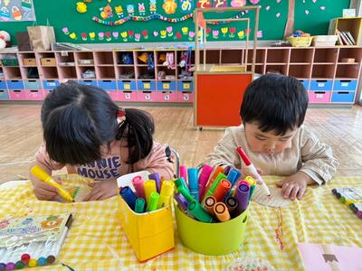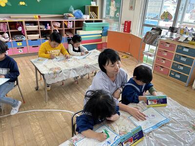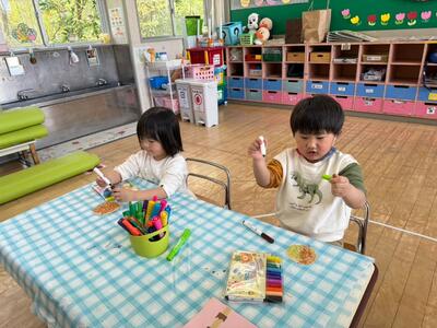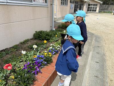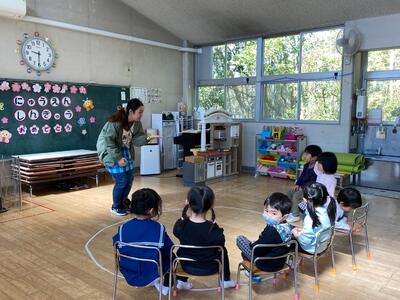 4月も終わりに近づいていますが、お休みせずに元気いっぱいの江名幼稚園の子ども達です