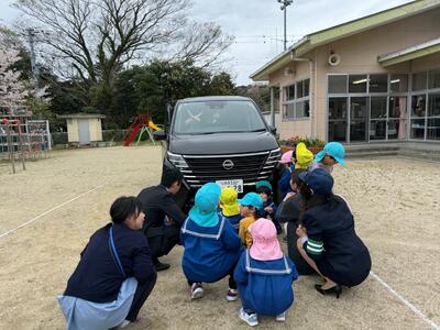 その後は外に出て、実際に車に隠れて乗ってる人から見えるかどうかを試したり、保護者の方々と一緒に横断歩道を渡ったりしました