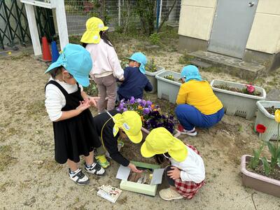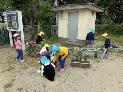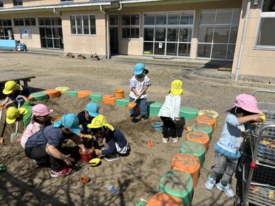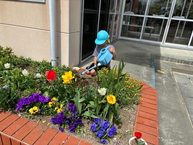 お外遊びの後には、年長さんが水やりやお掃除をしてくれています。ありがたいです。
