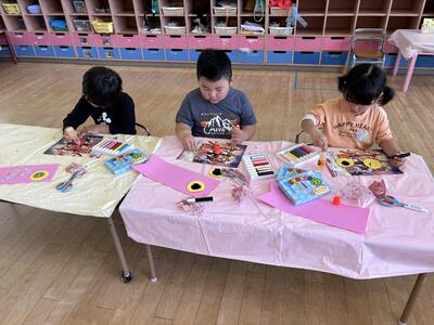 そら組さんは、イオンに展示されるお母さんの顔やちょうちょを作りました