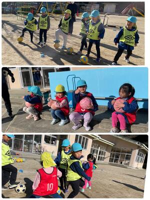 うさぎぐみさんも、ボールを使ってサッカーやドッジボールで遊びました♪