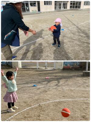 戸外では、ドッチボールを楽しんでいます