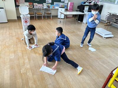 長〜い廊下で雑巾がけレース、楽しかったね