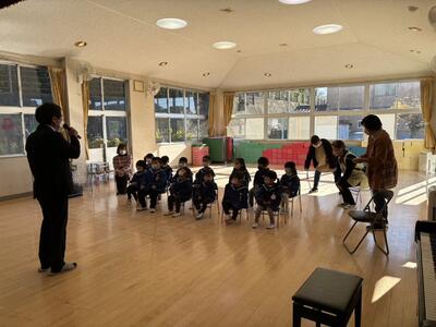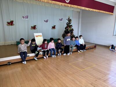 そら組さんは、冬休みの思い出をみんなの前で発表しました
