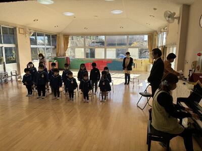 ちょっぴりドキドキしながらも、みんなの前で話す声の大きさ、言葉遣いなど工夫する姿がさすが年長さんでした