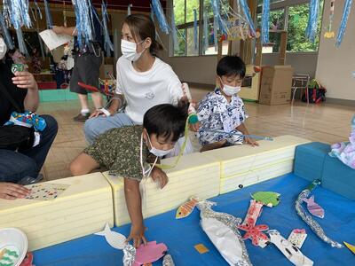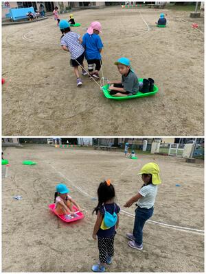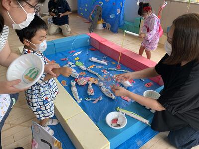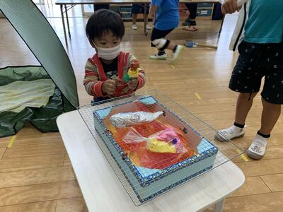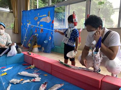 各学年共に夏休みで経験したことを遊びに取り入れたり、魚遊びを見つけたりしながら楽しんでいました