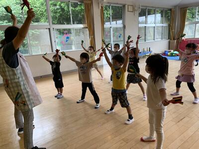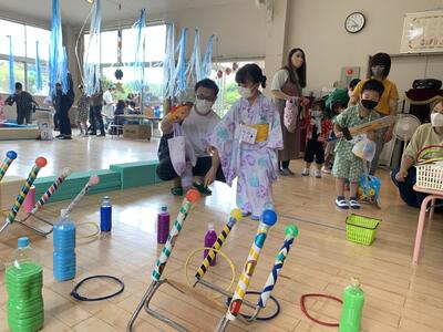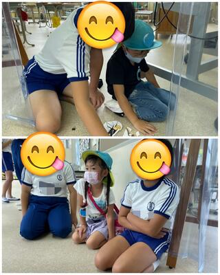 5.6年生のお兄さんお姉さんが丁寧に教えてくれて、幼稚園の子どもたちは安心して活動に参加することができました