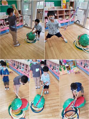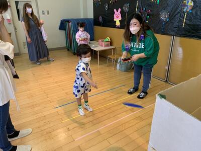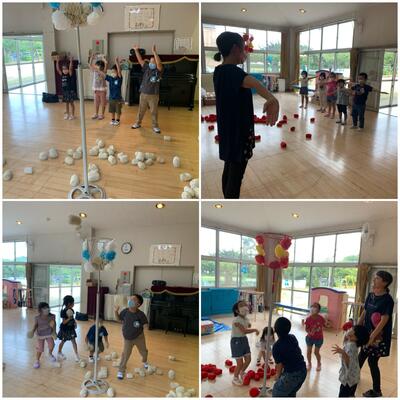パラパラと雨が降ったので室内遊びをしました