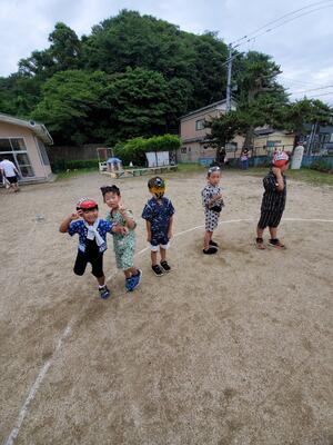 戸外ではリレーごっこを楽しみました