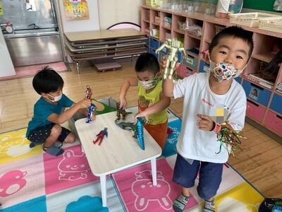 夏休み、さまざまなことを経験してきたようで…「〇〇したんだよ!」と先生やお友達と話す姿がたくさん見られました