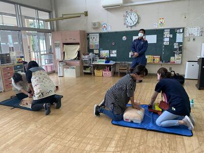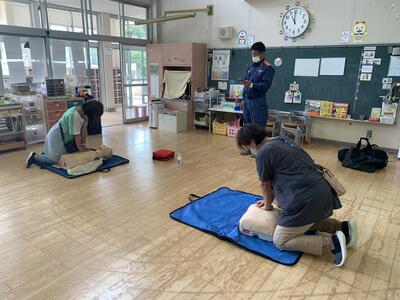 心肺蘇生のやり方やAEDの使い方を全職員で学びました