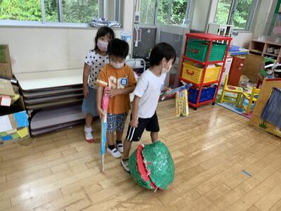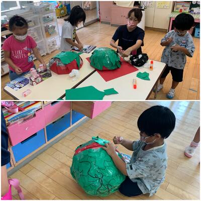 スイカを作ったり、スイカ割りの棒を作ったりしました。