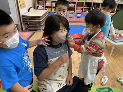 髪を切られたり、注射されたり…先生は大忙しです