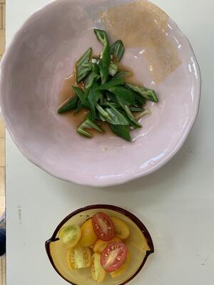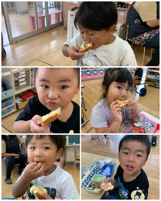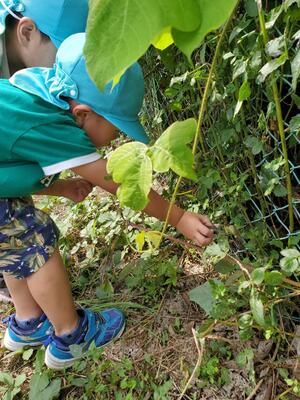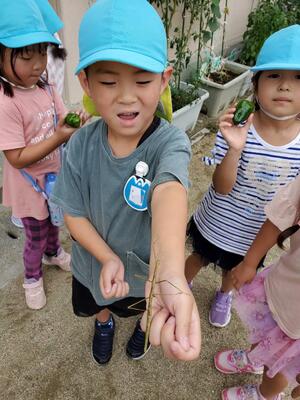 ひまわり組は収穫したオクラとトマトを食べました