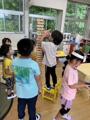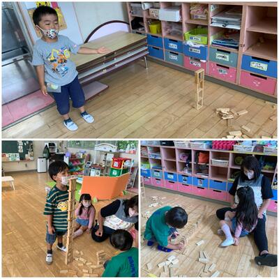 どこまで高く積めるかな??がんばれ!