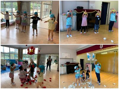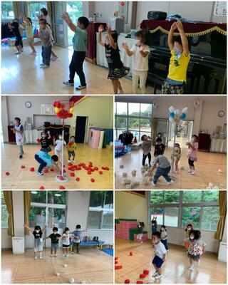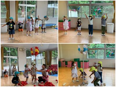 今日は、マジカルバナナや絵しりとり、しっぽ取り鬼ごっこなどを行いました