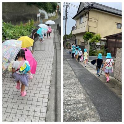 今日は一列に並んで歩きました。