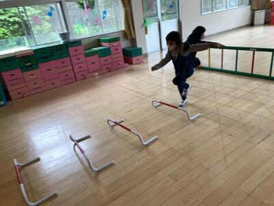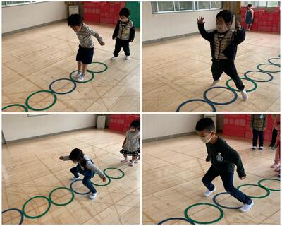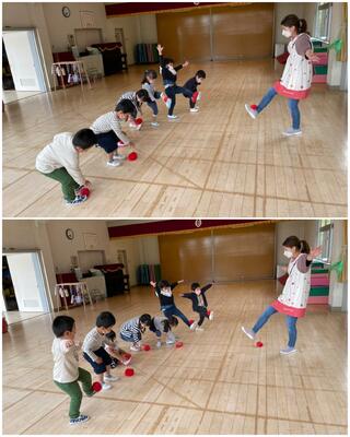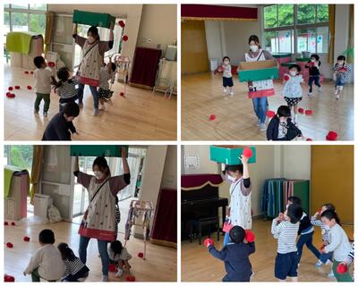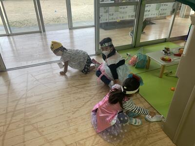 うさぎ・ひまわり組は、遊戯室で遊びました