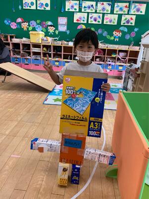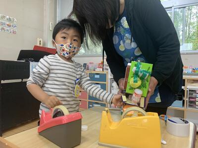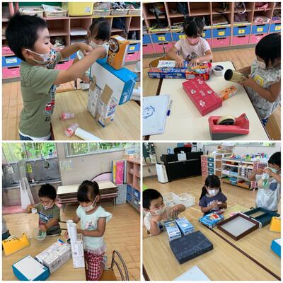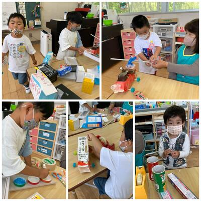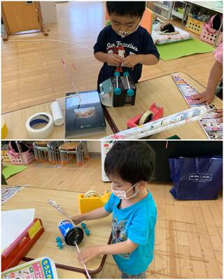 どうやったらくっつくかな?テープの長さはどのくらいかな?と考えながら作りました