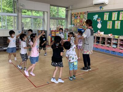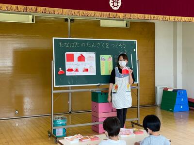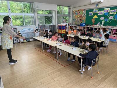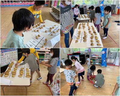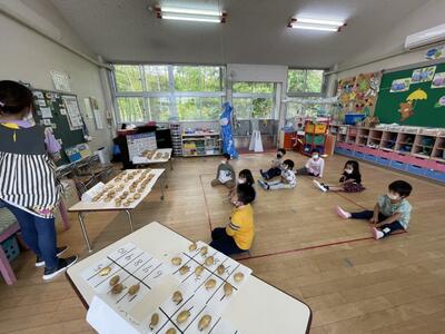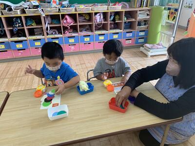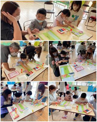 先生のお話を聞きながら、左右どちらに貼るのか聞いて取り組みました。聞く力や集中力を身につけていくこともとても大切ですね