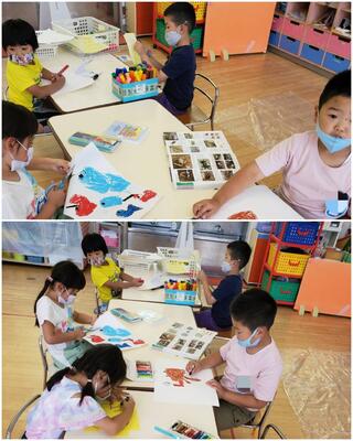 そらぐみは水族館ごっこに向けて魚作りをしていました