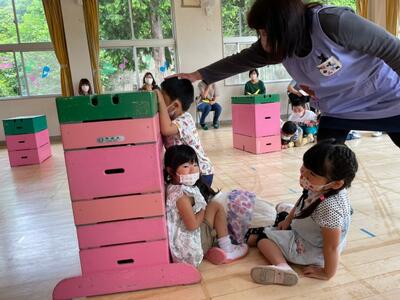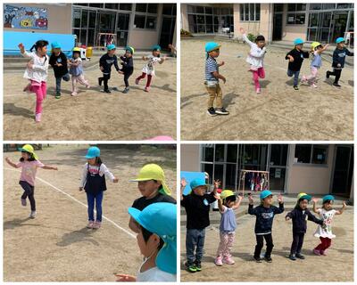 うさぎ・ひまわり組は明日の保育参観に向けてお遊戯室で過ごしました