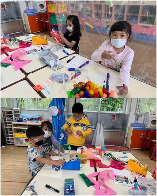 製作コーナーでは、何を作るかイメージを膨らませ、それに見合った材料を探し、楽しむ姿が見られました