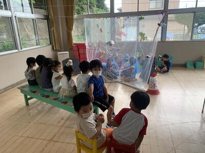 うさぎ・ひまわり組にそら組が遊びにきてくれました