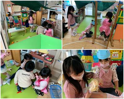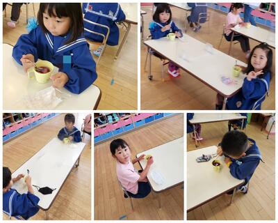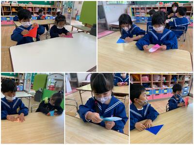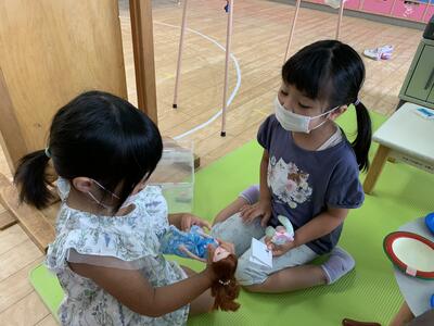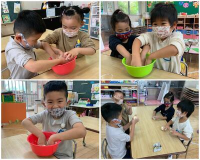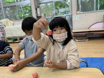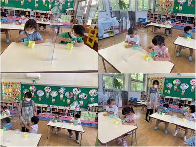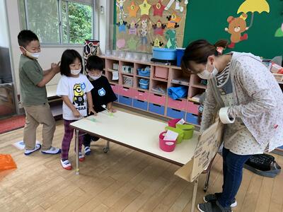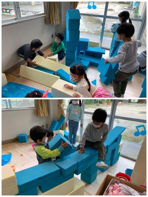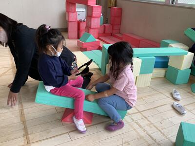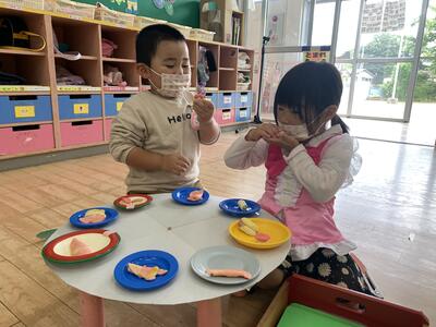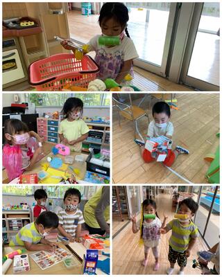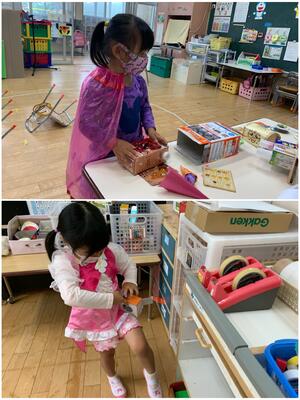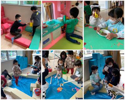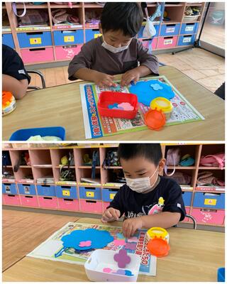最近は4歳児さんが、お兄さん・お姉さんの気持ちが出てきたようで、3歳児に教えてあげたり、作ってあげたりする姿が見られてきました