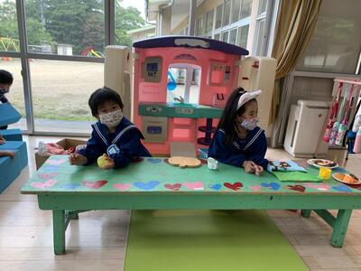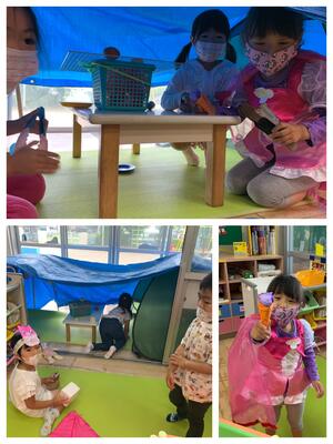 ままごとでは先週から引き続きBBQごっこが盛り上がっています
