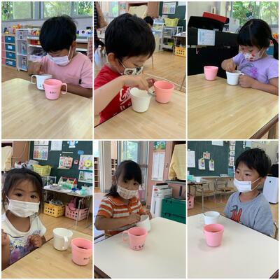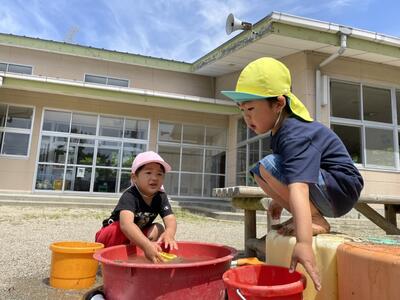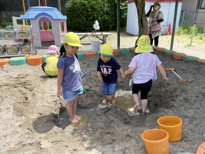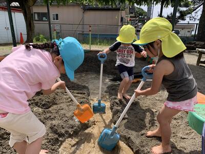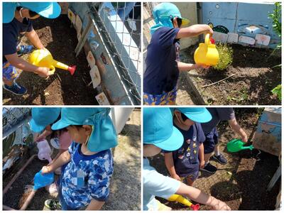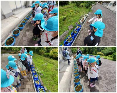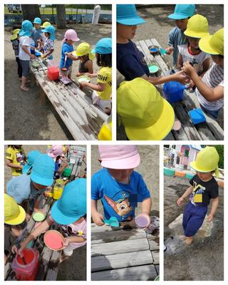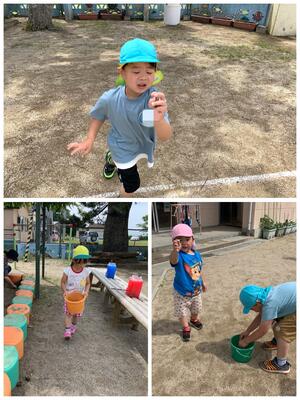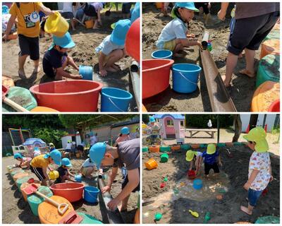 1人一つのバケツがあり、幼稚園とは違うことを発見