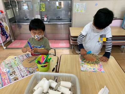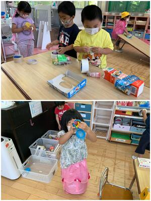 製作遊びでは、飛行機作りやカメラ作りが始まりました!