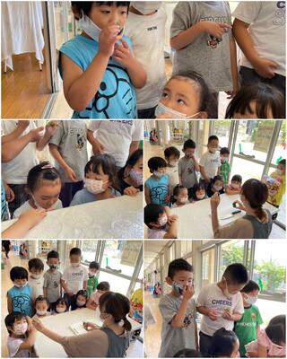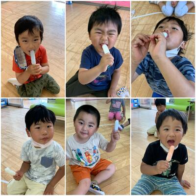 どろんこ遊び楽しかったね!みんなで着替えておやつのアイス