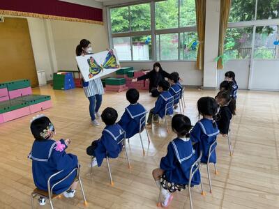 ひまわり・うさぎ組は紙芝居を見て、製作!