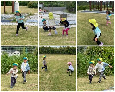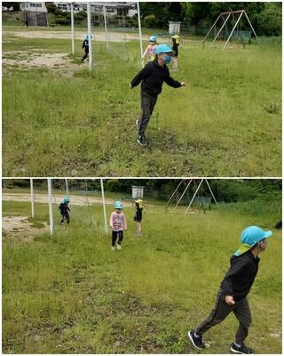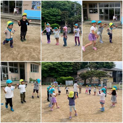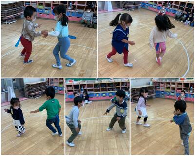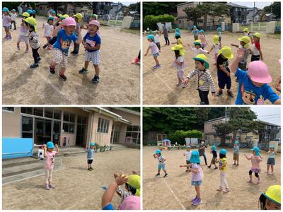 お友達のお尻についているしっぽをとった方が勝ちですしっぽをよーく見てとってね