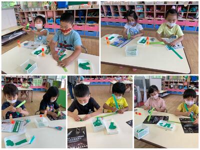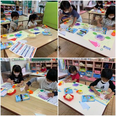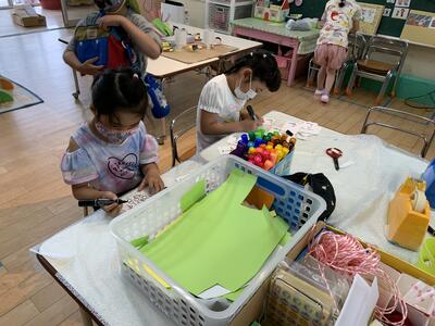 考える力、イメージする力、指先を使う力(テープやハサミ)など、たくさんの力を使います!