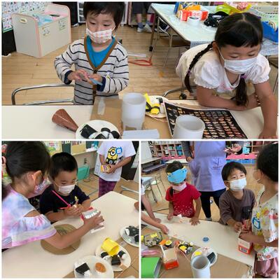今日はパン屋さんやお寿司屋さんを作りたいとお店屋さんごっこが始まりました