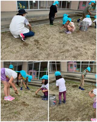 泥んこ遊びが始まるので、みんなで石拾いをしました