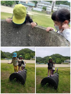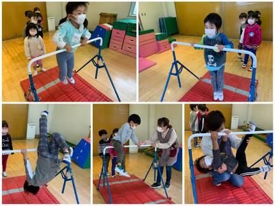 鉄棒では、前回りや逆上がり、足抜き回りやぶたのまるやきを楽しみました