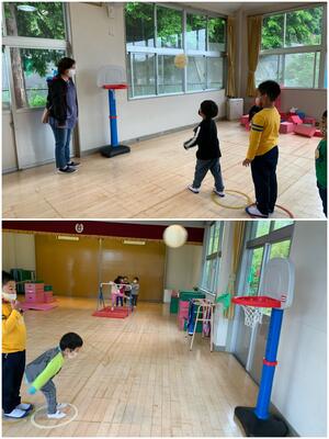 どうやったらボールが上手く入るのか、子どもたちなりに考えています